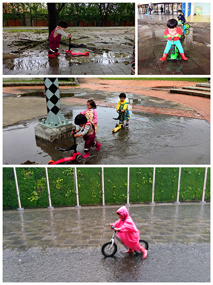 =====> 還有, 壞天氣也不一定要待在室內, 小玩伴們只要有水有沙, 就好玩的不得了, 下雨天尤其好玩。(P.S. 生病是病毒感染, 天冷吹風不會感冒, 待在室外反倒比在室內不容易被傳染。當然如果已經生病了還是不要太猛多休息, 體溫升高有助於對抗病毒)