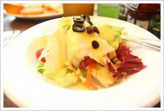 很快的, 佐蜂蜜芥末醬的沙拉登場了。